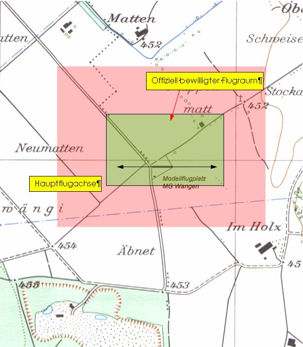 und Piloten höchste Priorität bei. Für den Betrieb des Modellfluggeländes hat der Verein (MG Wangen), als Eigentümerin des Geländes „oberi Schürmatt“ (Grundbucheintrag 1784),auch eine Genehmigung des Amtes für Landwirtschaft. |